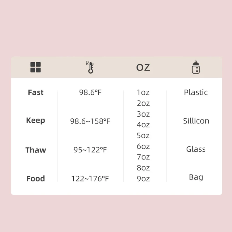 5. Breast milk quickly thaws without losing nutrients, quickly heats the panel, and automatically stops heating at 55 ℃