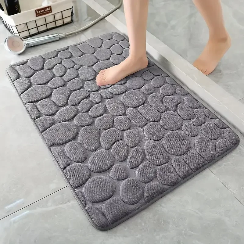 3D Non Slip Bathroom Mat Cobblestone Absorbent Floor Mats Machine Washable Quick Drying