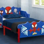Help your little superhero drift off to dreamland after a hard-day’s crime-fighting, swinging and web-slinging with this Spidey and His Amazing Friends 3D Toddler Bed by Delta Children. Featuring colorful Spidey decals, plus three-dimensional accents on the headboard, footboard and side rails, this toddler bed will be the centerpiece of any kid’s bedroom. For additional security, this toddler bed is the perfect kid-sized height and has two attached guardrails, which makes it the best option for your child’s first big-kid bed. It provides the independence your growing child craves while keeping them safe throughout the night. The Spidey and His Amazing Friends 3D Toddler Bed by Delta Children is sure to inspire big dreams for your little one.